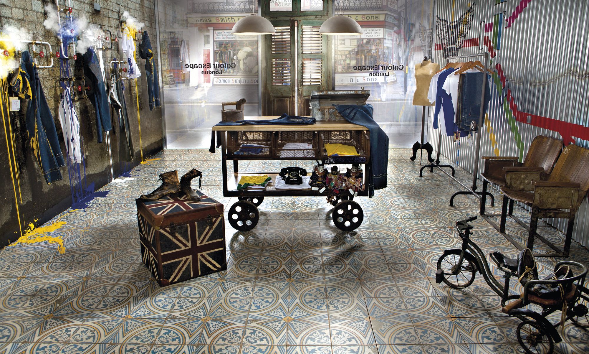 Für ihn ist der Vintage-Stil die Manifestation der postmodernen Kultur. Ein nostalgischer Blick auf funktional dekontextualisierte Elemente der Vergangenheit ist das Leitmotiv seines Möbelhauses.
