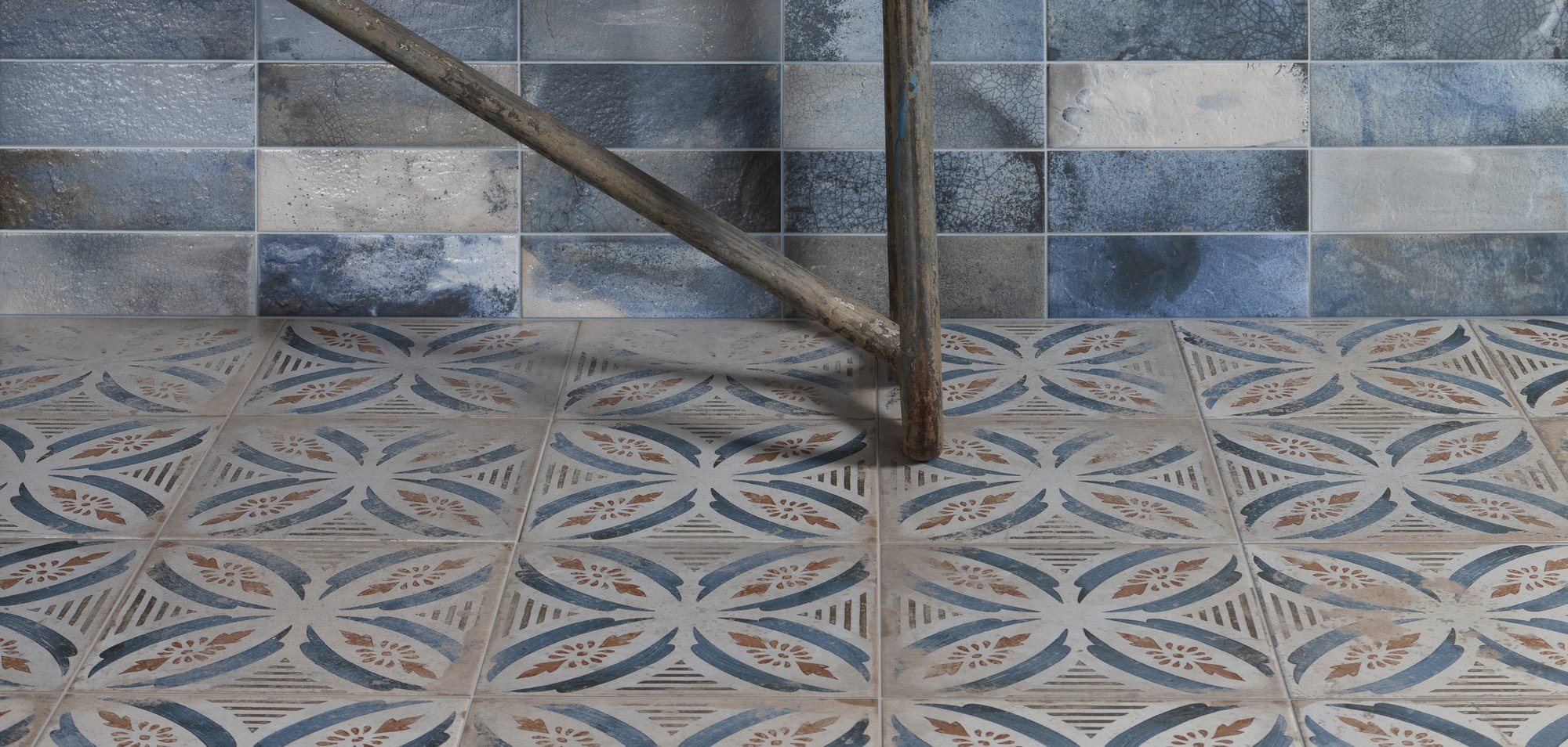 Fliesen in unvergleichlichem Used-Look, wie vom Lauf der Zeit geprägt.