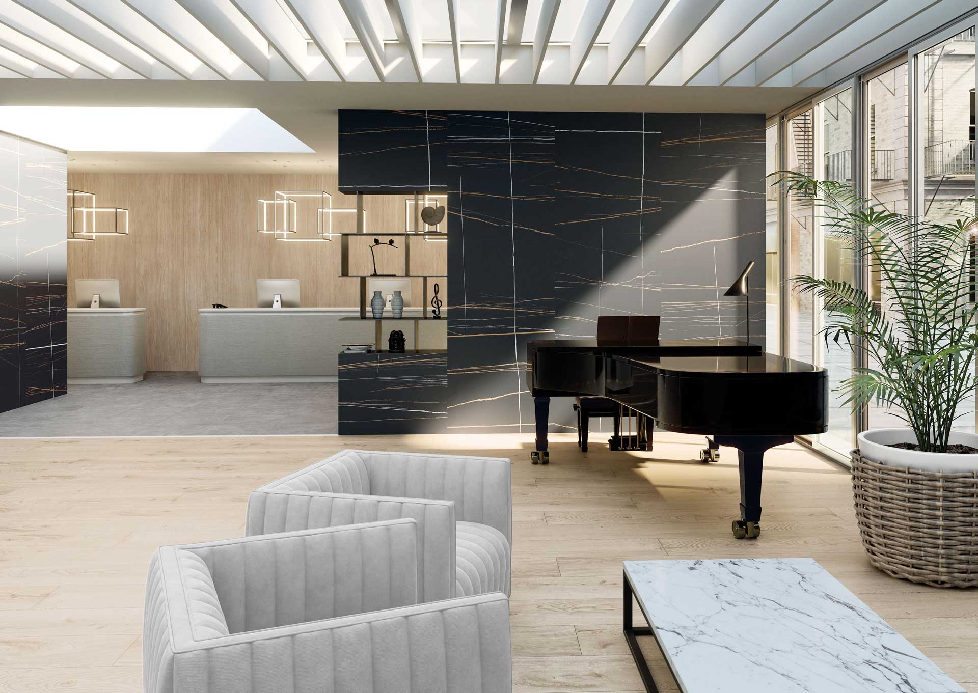 Feinstein-Fliesen für ehrgeizige Projekte in zeitgenössischer Ästhetik. Grossartige Gestaltungsmöglichkeiten mit grossformatigen Fliesen in eindrucksvollen Maßen von 100 x 100cm bis 160 x 320cm.